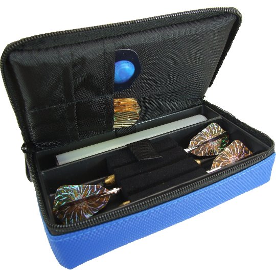 Darttasche aus robustem und pflegeleichtem Kunststoffmaterial für 3 komplett montierte Dartpfeile und Zubehör.