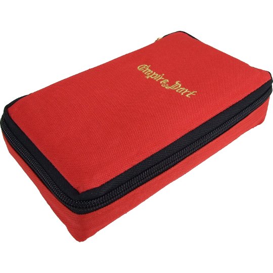 Darttasche aus robustem und pflegeleichtem Kunststoffmaterial für 3 komplett montierte Dartpfeile und Zubehör.